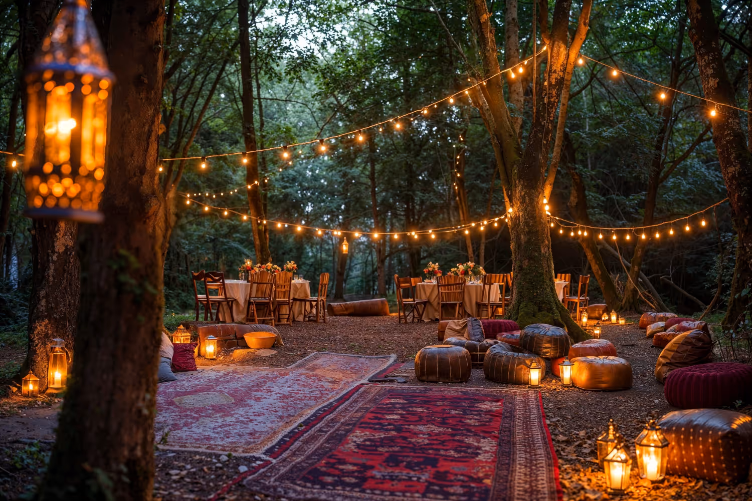 Boho Chic is more than a look — it's a vibe. Think rattan furniture, wild florals, soft draping, and warm lighting. Guests can lounge barefoot on Moroccan pouffes, sip craft cocktails under the stars, and enjoy the kind of relaxed luxury that feels both free-spirited and refined.