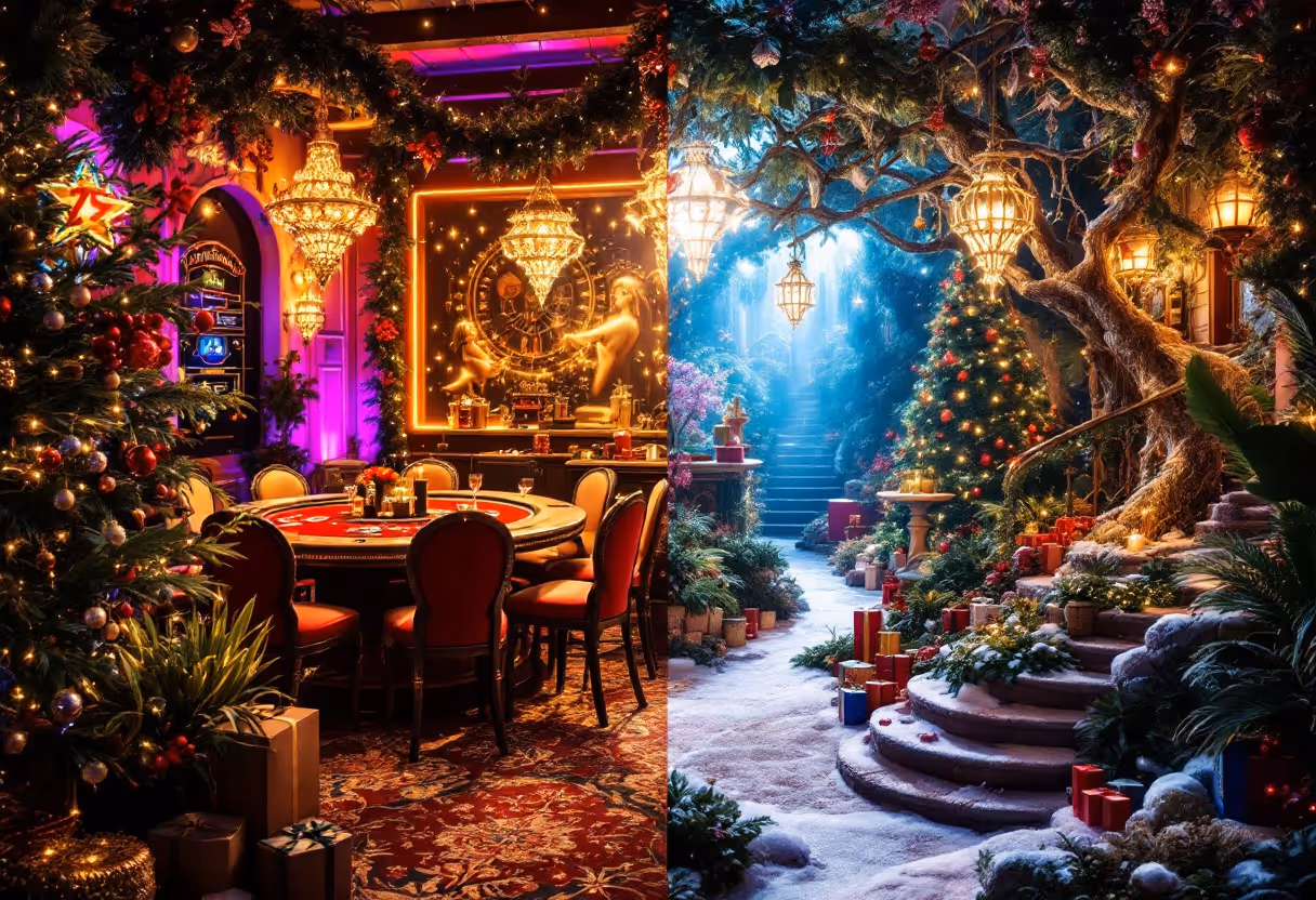 - Festive Spirit: Both themes can easily incorporate Christmas elements, from holiday-themed casino games to a Wonderland-inspired Christmas tree.