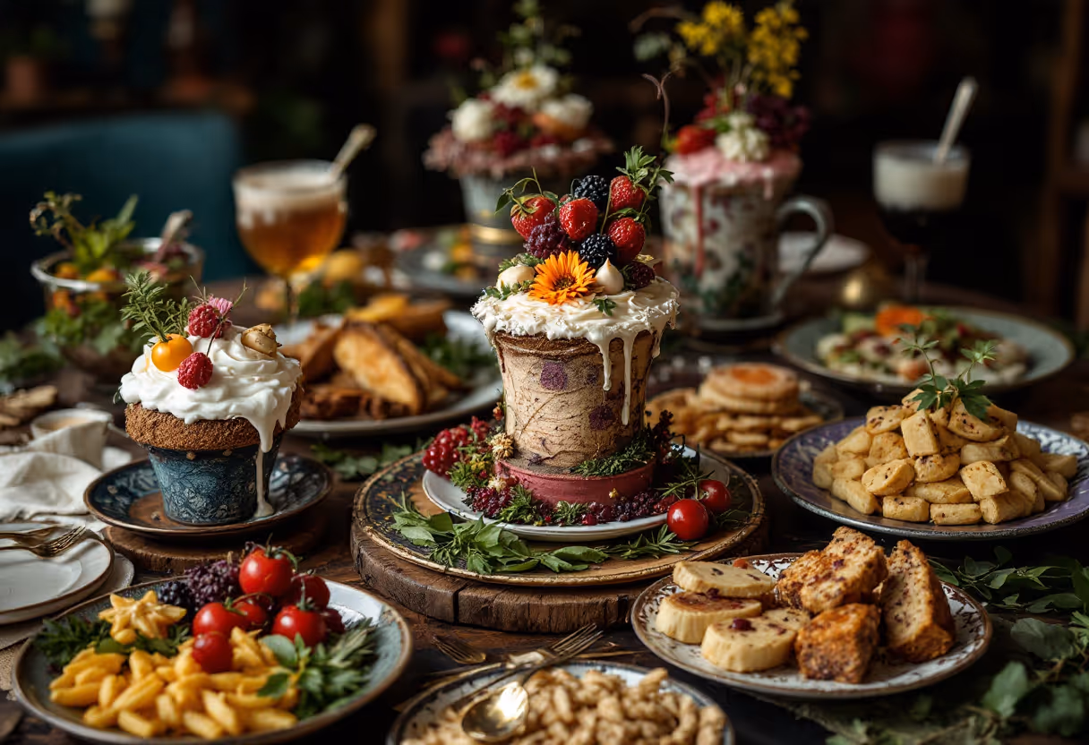 - Elegant plated meals with imaginative names like "Mad Hatter's Feast" or "Queen of Hearts' Holiday Roast.”