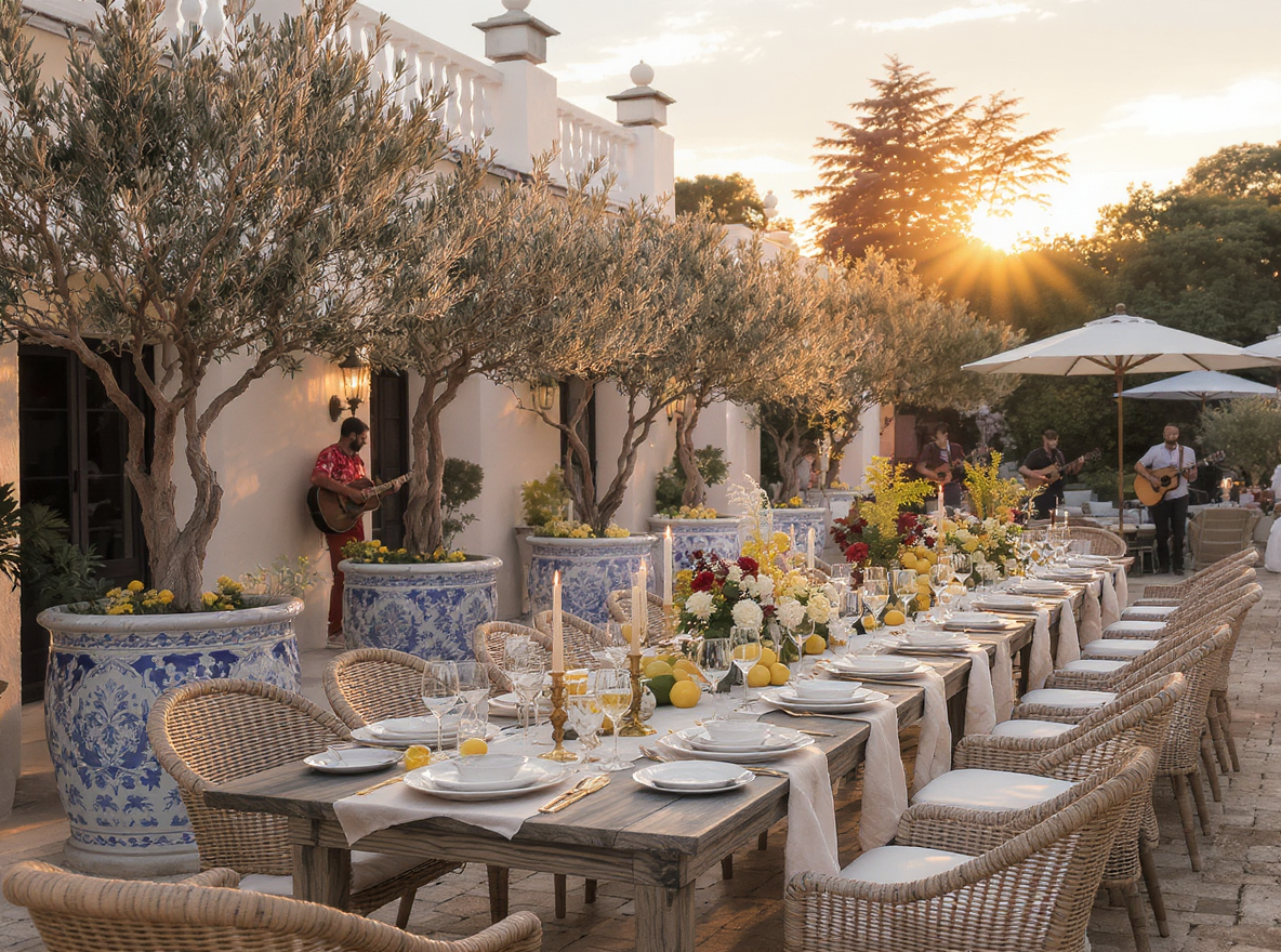 Transport your guests to the warmth of the Mediterranean. Think fresh citrus tones, olive trees, blue and white décor, rustic dining, live musicians and summer cocktails. This theme works beautifully for corporate client entertaining, private celebrations and brand experiences.