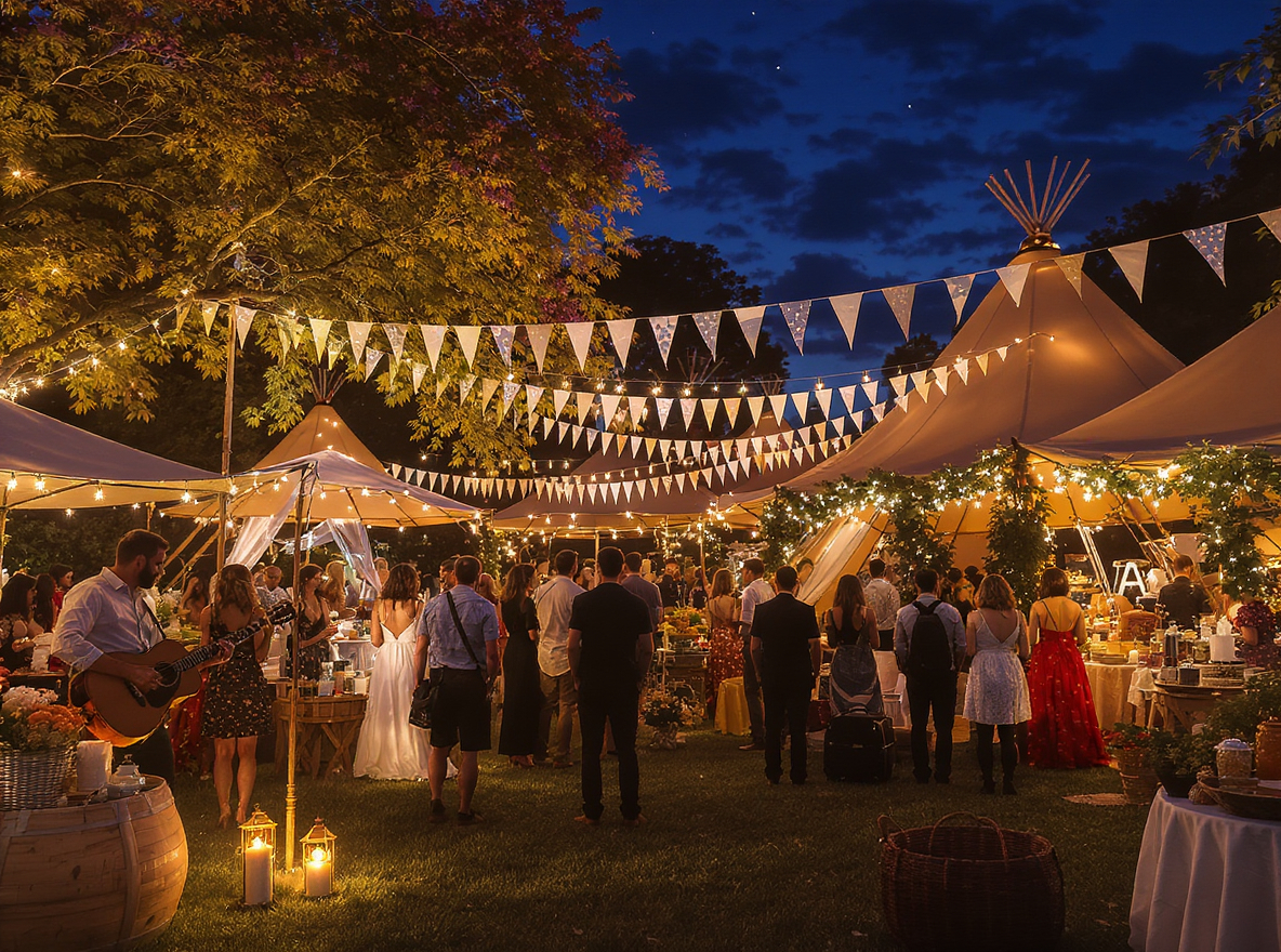 Inspired by British summer festivals, this theme brings relaxed luxury together with high energy entertainment. Expect boho chic décor, festival flags, acoustic musicians, DJ sets, interactive food stations and vibrant lighting.